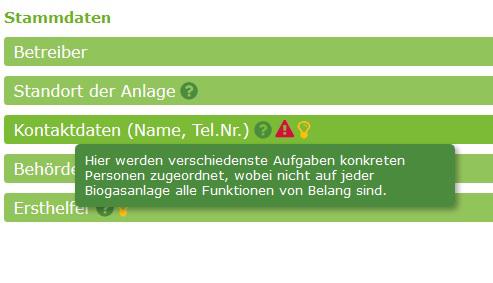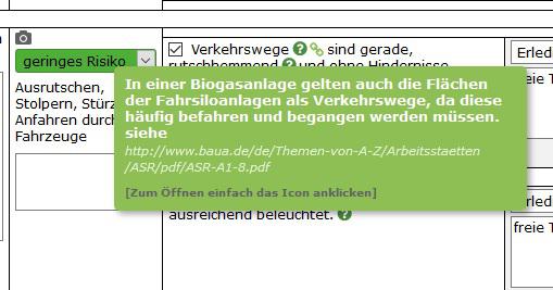 Neben dem Aufzeigen von möglichen Aussagen sind Hintergrundinformationen in Form von Icons, sogenannten „Tooltips“ zentraler Bestandteil der Arbeitshilfe, welche den Anwender bei der Erstellung unterstützen.